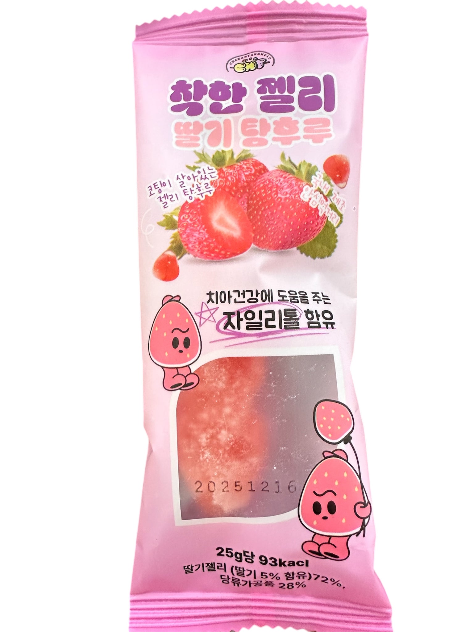 「チャカン たんぐる」は、日本でも話題の甘酸っぱいキャンディスナック、タンフルを手軽に楽しめるパック入りスイーツです。苺とシャインマスカットの2種類のフレーバーで、甘い砂糖コーティングとジューシーなフルーツの組み合わせが一口ごとに心を躍らせます。25gと35gのパックサイズで、ちょっとしたおやつやシェアにも最適。見た目の可愛さと美味しさが両立した、特別な和スイーツ体験です。